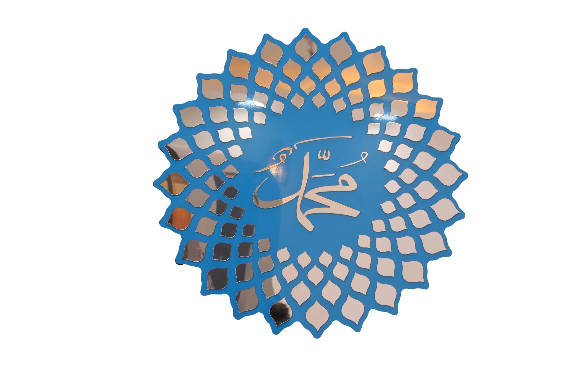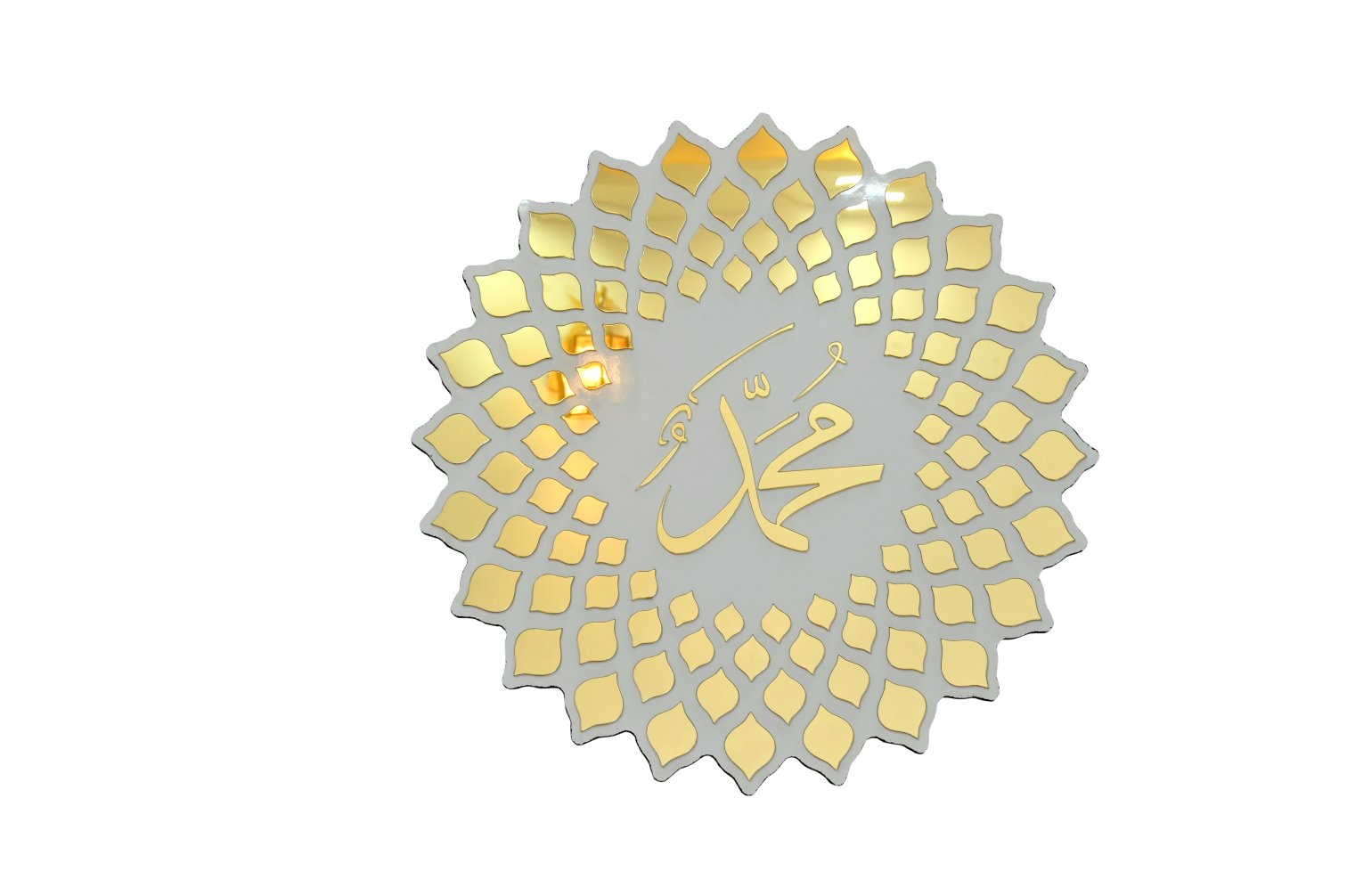 المادة : ام دي اف | القطر: 38 سم | اللون: أبيض وذهبي. شكل دائري مصنوع من خشب MDF بالأشعة فوق البنفسجية مقاس 8 مم مع أكريليك مرآة مثالي لغرفة المعيشة والقاعة وما إلى ذلك. يقف المنتج على بعد 1 سم من الحائط وسهل التعليق.