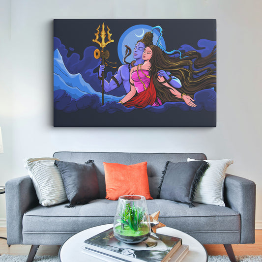 Regalocasila Hindu Goddess Maa Parvati And Lord Shiva Canvas wall painting
